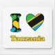 Ik houd van Tanzania muismat. J'aime la Tanzanie. Afbeelding van een hart a rencontré de Tanzanianse vlag erin. De kleuren zijn groen, geel, zwart en blauw.