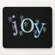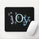 Cartes de voeux, sacs fourre-tout, tasses, T-shirts et autres objets de vacances avec lavande, texte turquoise et bleu et flocons de neige dit "JOY" !