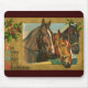 Dessin vintage de trois chevaux avec la baie de houx avec le texte vous souhaitant un Joyeux Noël. Perfectionnez la conception pour l'amant, le cowboy ou la cow-girl de cheval dans votre famille.
