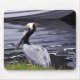 Aux nuances molles des bleus, gris et bruns, le pélican dans la photo sur ce mousepad pose au bord de l'eau, attendant des poissons pour nager par. La lumière se reflète outre des plumes brillantes et accentue les ondulations dans l'eau.