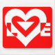 A graphic logo, custom made LOVE en blanc.