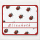 Ladybug With Name Mouse Pad design dispose d'un mignon motif ladybug contre un arrière - plan blanc. Le nom/texte est affiché sur le devant en rouge/bordeaux. Le design est bordé d'une bordure rouge/bordeaux.
