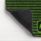 Cette conception est noire avec code machine vert et une zone de texte personnalisée carré arrondie correspondant pour vos initiales. Un thème technologique cool pour les informaticiens, les programmeurs et le personnel de cybersec.