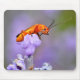 Macro-coléoptère commun rouge (Rhagonycha fulva) sur la fleur bleue