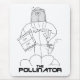 L'apiculteur a été stylisé comme un personnage de super-héros - entièrement équipé avec des abeilles, outil de ruche et fumeur - juste un peu distrait par l'abeille dans son voile.