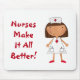 Une infirmière mignonne de bande dessinée sourit à vous, avec le texte en rouge au côté, des infirmières le font tout mieux. Perfectionnez pour l'infirmière dans votre vie !
