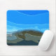 Un design abstrait bleu vif d'un sommet de montagne et d'un ciel.