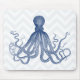 Poulpe graphique vintage d'impression avec l'arrière - plan de motif de chevron. Perfectionnez pour l'océan, la plage ou les cadeaux nautiques de thème.