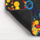 L'amusement et la rétro conception géniale d'arrière - plan ont composé des formes bleues d'anneau et des taches oranges, rouges et jaunes. Image disponible sur de divers cadeaux et produits.