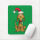 This adorable illustration features Max the Dog sitting patiently, fully embodying the holiday spirit—even if he looks slightly confused by it all! He is dressed in a floppy red Santa hat and a chunky red collar, which is charmingly adorned with a green Christmas ornament. Max's classic, expressive eyes and loyal posture make this image the perfect, heartwarming graphic for anyone who loves the true hero of the Grinch story!