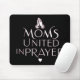 L'image montre le logo d'un groupe appelé "Moms unis dans la prière". Le logo comporte l'expression "Moms Unis dans la prière" écrite dans une police décorative. Au-dessus du texte, il y a une paire de mains de prière symbolisant la foi et la prière. Sous le texte, il y a un petit coeur qui représente l'amour et la compassion. Le logo suggère un groupe où les mères peuvent se réunir pour prier pour leurs familles et pour les autres.
