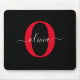 Tapis De Souris Monogramme personnalisé Nom du script Noir Blanc R
