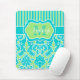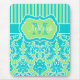 Ces rayures décorées d'un monogramme modernes de bleu de turquoise, de vert, et blanches avec le mousepad de motif de damassé a des boîtes de modèle qu'il faut que vous customisiez avec votre propre nom, initiales, monogramme, ou tout autre texte. Si vous avez besoin de n'importe quelle aide customisant ce mousepad à la mode, envoyez svp niteowlstudio@gmail.com.