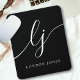 Tapis De Souris Monogramme Script Élégante Feminine Noir Blanc