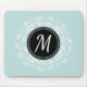 Chic mousepad avec couronne florale bleu menthe et monogramme personnalisé.