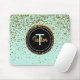 Ajoutez de l'élégance et bling à vos bureaux avec un vert et un or en bon état pâles, à vert décoré d'un monogramme de menthe de mousepad- assez doucement et à couleur d'or combinés. Le centre a le noir et le cercle en métal d'or de faux avec le nom personnalisé dans le manuscrit assorti de tonalité d'or et la couleur en bon état de pastel, lettre initiale décorée d'un monogramme. Des points fascinants de confettis de feuille d'or de Faux sont dispersés à travers. Note : Toutes les images sont imprimées. Métal ou parties scintillantes non réel de confettis. Donnez un cadeau personnalisé pour elle qui sera non seulement employée, mais apprécié. Cadeau sophistiqué et customisé pour les femelles exécutives ou pour le décor girly élégant de siège social.