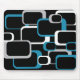 Un amusant motif rétro inspiré de carrés gris, blancs et bleu paon contre un arrière - plan noir sur un tapis de souris