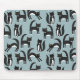 Chats tuxedo noirs et blancs mignons qui vaquent à leurs affaires. Un motif amusant sur un arrière - plan turquoise moyen, parfait pour les amateurs d'animaux et d'animaux de compagnie. Les chats adorent une souris. Art original de Nic Squirrell.