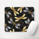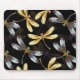 Motif sans couture avec or, bijoux, libellules brillantes avec ailes détaillées et pétillantes sur arrière - plan noir. libellule d'or.
