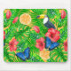 Motif d'aquarelle avec toucan, papillon, hibiscus et feuilles tropicaux. J'ai peint des éléments pour le motif avec des aquarelles sur papier, puis je les ai scannés et j'ai fait le motif dans Illustrator