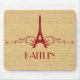 Elégant et chic Mousepad à la française, avec un faux arrière - plan à la silhouette de bois et un design Tour Eiffel dans le rouge foncé orné de cascades de tourbillons design. Ce design girly et tendance est facile à customiser avec le texte personnalisé de votre choix. Cliquez sur "Customiser" pour trouver d'autres options de personnalisation.