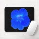 Cette mousepad présente une photo d'une fleur de Nasturtium. La photo a été colorée artificiellement, ce qui donne une fleur bleu foncé pleine de différents tons qui la rendent à la fois maussade et magnifique. L'arrière - plan est noir.