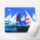 Un mousepad avec une saveur nautique. La conception de bateaux à voile est faite à partir d'un collage de papier peint à la main. Voir les cartes de voeux également assorties et d'autres produits.