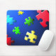 Un mousepad simple avec le puzzle à trois dimensions rapièce la chute sur un fond bleu rétro-éclairé