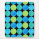 Un Mousepad aux couleurs vibrantes avec un motif abstrait "Blue Moons" aux bleus vifs et vert néon sur un arrière - plan noir ; d'un collage de papier peint à la main par Judy Adamson.