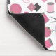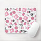 Un mousepad comportant une conception orientée de couture se composant d'une machine à coudre, des bobines de fil, d'un coussin de goupille, des ciseaux, des échantillons de tissu, et des aiguilles de couture. La conception a un modèle de couleurs rose.