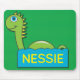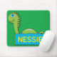 Un adorable monstre vert loch avec écailles vertes sur le dos, avec le nom Nessie.
