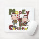Deux vaches dans des casquettes de bas, des cadeaux de Noël, des lumières de vacances, des sucres de canne, et texte rouges qui lit "Noël de Mooey" sur le T-shirts de vacances, les tasses, les cartes, les autocollants, les sacs fourre-tout, les horloges murales, les boîtes de souvenir, les ornements, les keychains, et d'autres habillement et cadeaux mignons de vacances de thème de vache.
