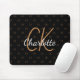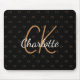 Tapis De Souris Noir or monogramme initiales nom script élégant