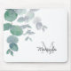 Ce tapis de souris botanique présente une végétation d'eucalyptus aquarelle dans des tons doux de vert sur un arrière - plan blanc. Customisez-le avec votre nom et votre monogramme. Aquarelle originale © Michele Davies.