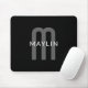 Tapis De Souris Nom Monogramme d'apparence moderne | Noir gris bla