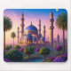 Plaque de souris d'un château du moyen-orient avec des minarets dans une oasis luxuriante dans le désert, dans le style des mille et une nuits arabes. L'image a été réalisée avec Leonardo.ai.