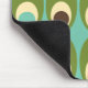 Ce tapis de souris a un design moderne du milieu du siècle des ovales vertes avec ovales et cercles en eux les faisant ressembler à des oeufs dans des couleurs rétro de rouge, jaune, bleu, vert, marron et orange sur un champ de bleu clair.