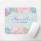 Opal Gemstone Pastel Iridescente Moderne Business Souris Pad. Ce design présente des pierres apparentes colorées en arc-en-ciel, dans un style artistique contemporain agrémenté de parties scintillant dorées. Ce design féminin lumineux est parfait pour toute femme d'affaires professionnelle à la recherche d'une identité artistique d'entreprise amusante. Parfait pour un planificateur d'événements, maquilleur, coiffeur, propriétaire de salon et plus !