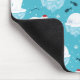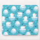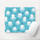 Tapis de souris avec un motif de Noël mignon avec des ours polaires debout sur de la glace flottante portant des chapeaux de santa rouge. Des petits igloos, des flocons de neige et des poissons entourent ces adorables ours polaires qui se frottent sur l'eau. Arrière - plan bleu clair. Design de vacances mignon et fantaisiste.