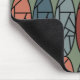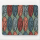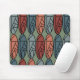 Ce tapis de souris a un design art déco d'ovales avec des motifs abstraits dans chacun dans les couleurs rétro de rose et bleu.