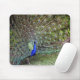 Ce paon bleu-vert iridescent évente sa queue dans la pleine splendeur.
