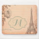 Paris France Eiffel Tower Chic Vieux Papier Parchemin Note Livre Monogramme Premier Motif Personnalisé Tissu Personnalisé Pad Souris