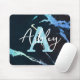 Faux parties scintillant mousepad bleu marbre personnalisé avec un monogramme incluant une initiale et un nom.