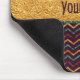 Mousepad fait sur commande personnalisé avec un motif chic, beau, coloré de triangles au dessus - avec un effet de parties scintillantes et de feuille d'or de faux, et un motif scintillant à la mode de chevrons sur un arrière - plan pourpre au fond - avec une fausse bannière fascinante de feuille d'or au milieu avec le texte pour que vous personnalisiez avec votre nom ou tout texte. NOTEZ SVP : Ce sont les graphiques imprimés par appartement - les parties scintillantes ou la feuille d'or non vraies.