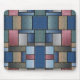 "Dénim Patchwork" Un agencement symétrique de rectangles texturés, en forme de tissu, dans les tons muets de bleu, vert, rose et beige. La disposition ressemble à une courtepointe ou à une mosaïque en patchwork, chaque bloc étant méticuleusement aligné pour créer une structure équilibrée en forme de grille.