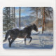 Tapis De Souris Percheron noir en forêt et première neige d'hiver