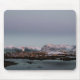 Phare sur les Lofoten avec des montagnes neigées en arrière-plan.