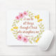 Tapis De Souris Philippiens 4:13 Écriture florale rose et jaune