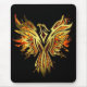 Tapis de souris de regard frais dans le noir avec Phoenix flamboyant d'or. Customisez pour ajouter n'importe quel texte que vous pourriez vouloir. Fait un grand cadeau pour n'importe quelle occasion.