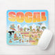 Une scène lumineuse et colorée offre une vue spectaculaire de la Californie du Sud - personnages farfelus sur la plage et le désert de SoCal présentant Los Angeles, San Diego, Riverside, Palm Springs, Anaheim, Anza Borrego et les parcs Joshua Tree ainsi que les villes frontalières de Tijuana, Tecate et Mexicali. Cette scène pleine de charme a tout - un surfeur pend dix tandis qu'une sirène salonne sur un rocher, une épaulard saute de l'eau, des animaux zoo saluent les touristes, un couple de plage musclé à flex pour impressionner comme un T-Rex rugit un défi et un réservoir se met en position et bien plus encore...